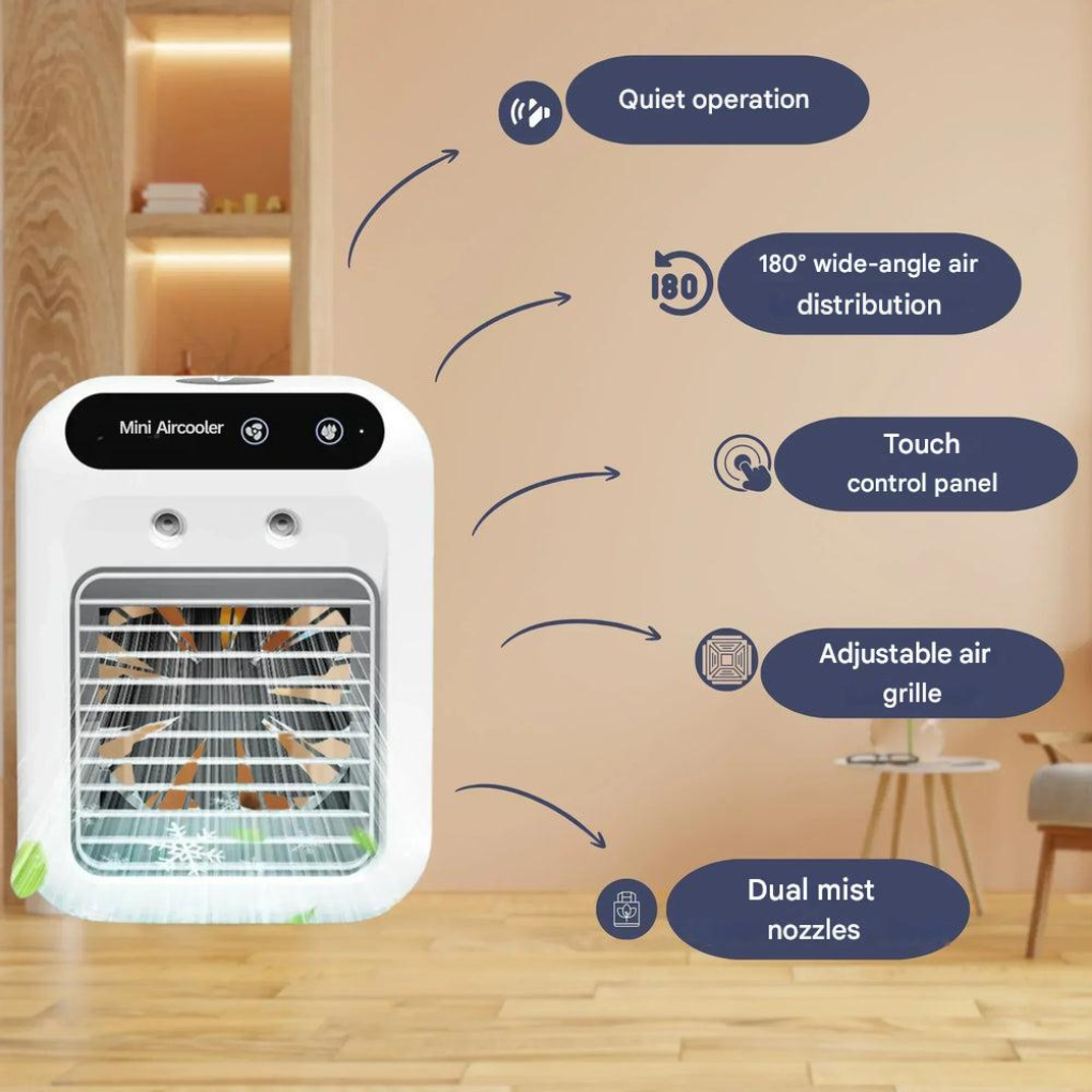 This summer air cooler and diffuser combines cooling airflow with an integrated scent feature to help create a pleasant indoor atmosphere. With adjustable airflow and fragrance dispersion, it suits living rooms, bedrooms, offices, or other indoor spaces. The compact design makes it a practical complement for warm days.