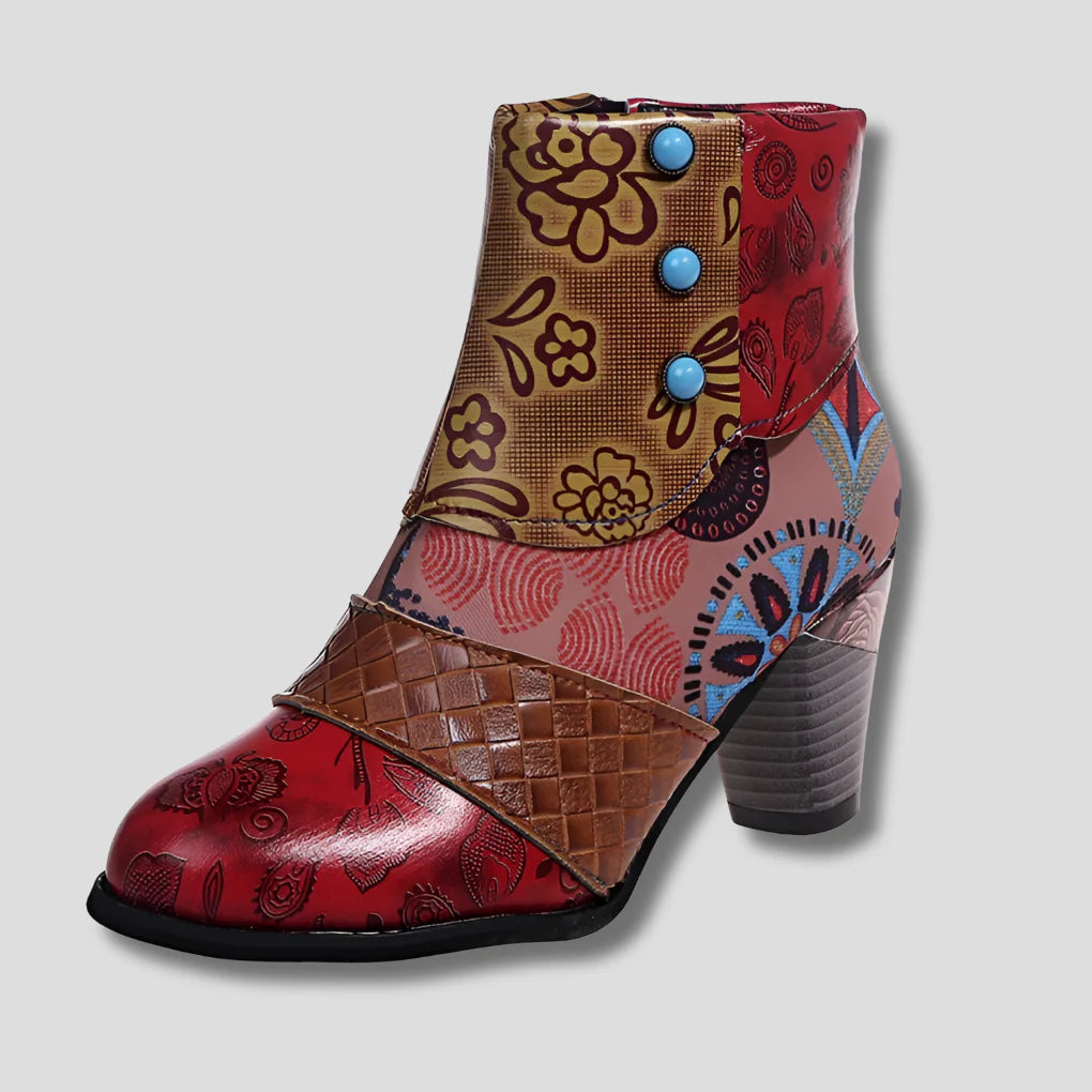 Embossed Floral Leather with Chunky Heel and Vintage Charm