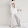 Refresh your wardrobe with this women's lounge set, designed to deliver effortless comfort and stylish ease for relaxing at home or running quick errands. Crafted from plush, soft-touch fabric, this set ensures breathable relaxation and silky smooth wear. The button-up shirt features a notched collar and a relaxed silhouette, while the matching wide-leg pants offer easygoing style and fluid movement.