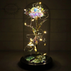 This eternal rose features a golden rose preserved under a glass dome, accompanied by LED lighting to enhance its display. Crafted for decorative use, it provides a touch of elegance for homes, offices, or personal spaces.