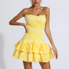 Strapless Smocked Mini Dress with Embroidery and Ruffle Detail