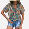 Women’s Casual V-Neck Paisley Print Drop-Shoulder Blouse