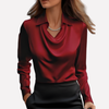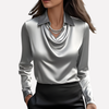 An elegant blouse designed to elevate everyday and special occasion outfits with its draped collar and refined surface.