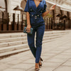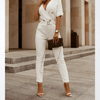 Theย Eleganza jumpsuit is a refined piece that seamlessly blends sophistication and comfort. Featuring a tailored silhouette with a notched lapel collar and a deep V-neckline, this jumpsuit is designed to flatter and impress. The included belt cinches the waist, enhancing your figure, while the half sleeves and sturdy polyester fabric provide a polished and stylish appearance.