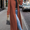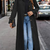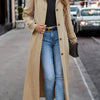 This trench coat for women features long sleeves and a full-length cut. The coat has a solid color and is designed for everyday wear during cooler seasons. Suitable for layering or as a lightweight outer garment.