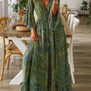 Step into a world of effortless charm with the Bohemian Maxi Dress. Featuring an enchanting paisley print and flowing trumpet sleeves, this dress blends free-spirited elegance with everyday comfort. The lightweight fabric and pullover design ensure a relaxed fit that drapes beautifully from shoulder to hem.