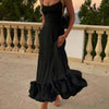 The dress is a sophisticated addition to your evening wardrobe. Designed to accentuate your silhouette, this midi-length dress features delicate ruffle details that add a touch of femininity and elegance. Perfect for various occasions, it seamlessly combines style and comfort.