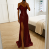 Women love its elegant silhouette, glittering finish, and bold side slit β a striking dress designed to make every formal occasion unforgettable.