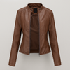 Elevate your wardrobe with this sleek PU leather jacket, featuring a sharp stand-up collar and full zip closure for a modern, minimalist look. Crafted from water-resistant faux leather, it delivers polished street style with a hint of moto edge—ideal for layering over tees or dresses.
