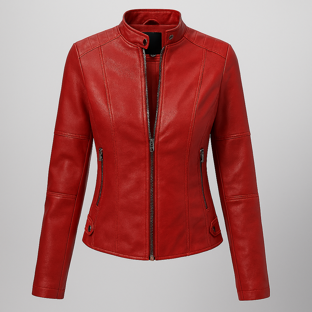 Women’s Fitted Red Leather Moto Jacket