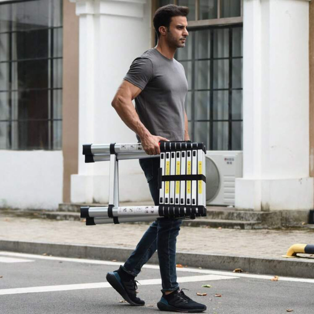 Make high-reach tasks easier and safer with this versatile telescopic ladder. Crafted from durable aluminum, it is lightweight yet strong, supporting up to 330lbs. Its foldable design allows easy storage and transport, while non-slip feet ensure stability on any surface. Ideal for home, office, or outdoor use.