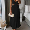 Embrace timeless elegance with this sleeveless dress, featuring a refined V-neckline and a subtly alluring open-back design. Perfect for summer events, vacations, or evening strolls, this dress combines comfort with chic style.