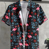 Men’s Short-Sleeved Shirt with Button Placket and Print
