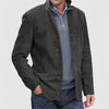 This men’s jacket features a turn-down collar, full button-up front, and long sleeves. Designed with a structured cut and solid color, it is made for casual or semi-formal use during mild to cool weather. The mid-weight fabric supports light layering.