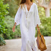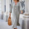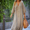 Women’s Ankle-Length Linen Dress with V-Neck and Puffy Sleeves