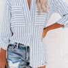 Women’s Striped Button-Down Shirt with Chest Pockets